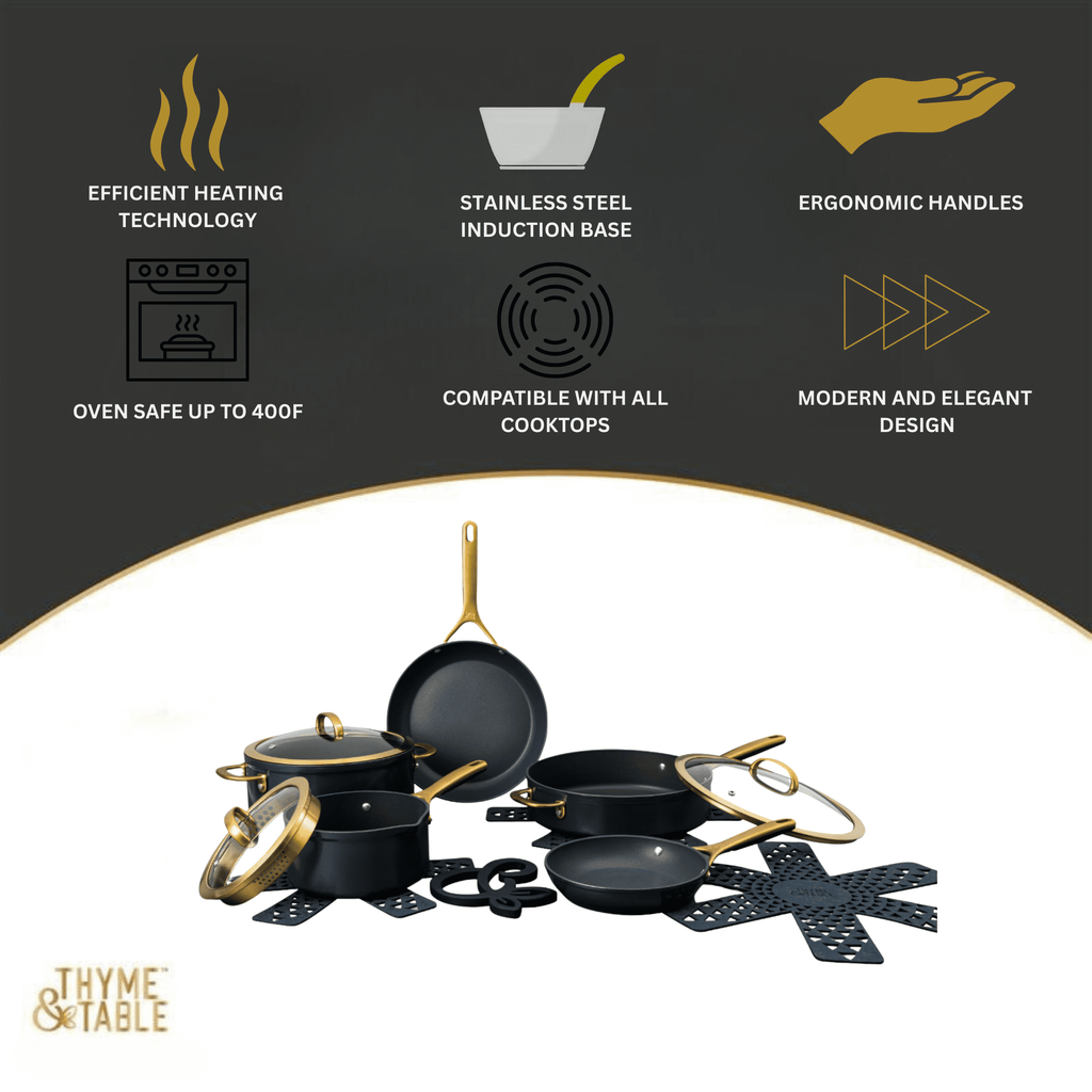 Conjunto de panelas antiaderentes de 12 peças da coleção Supreme da Thyme & Table, conjunto de panelas e frigideiras - Azul Atlântico