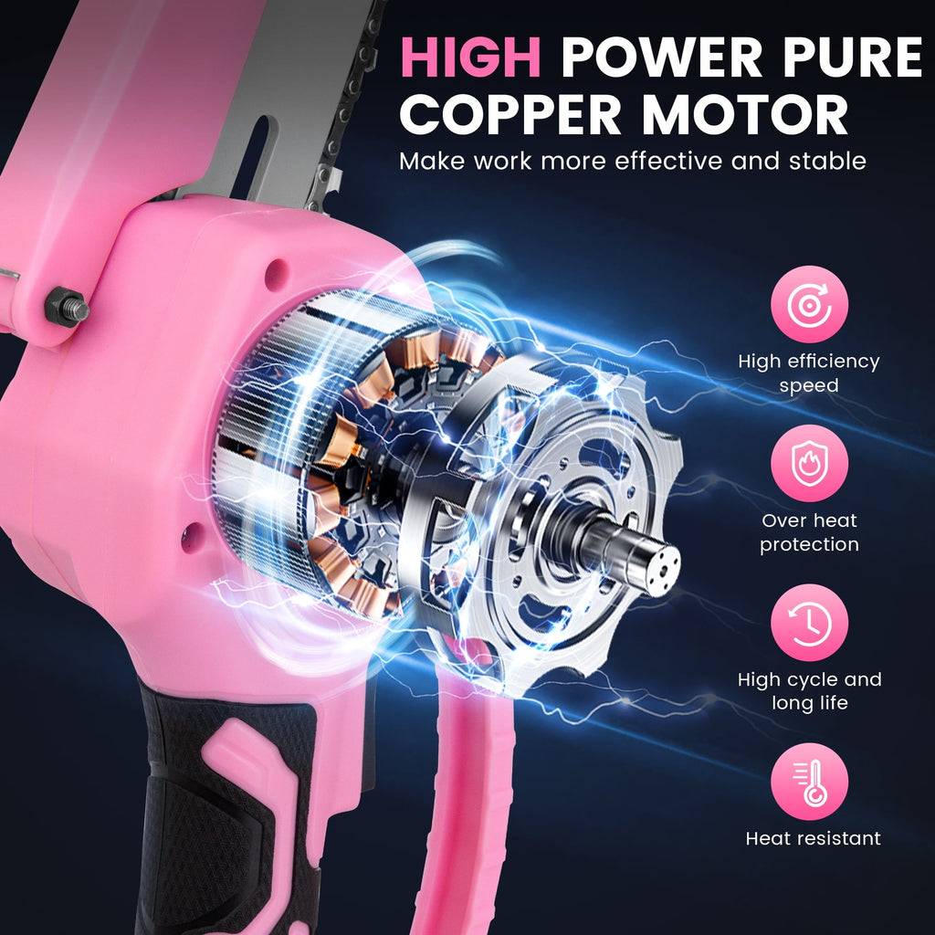 YAHHU 6 inch Lovely Pink Mini Chainsaw, Portable Handheld Electric Cordless Chainsaw,21V Battery,New